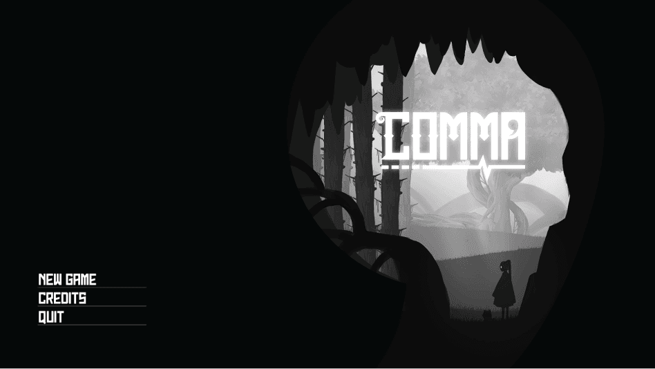 Comma is a 2D side-scrolling game about a little girl who has an incident that puts her in a comma. She meets a cat that leads her to rise from her comma. Players will control a little girl who wakes up in an unknown world and must navigate her through obstacles to escape.