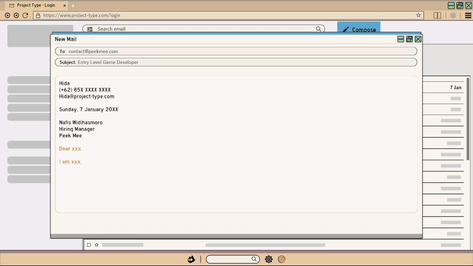 Project Typing is a typing game where you play as someone who is in a hurry to write a cover letter for a company that has a job opening you are interested in.